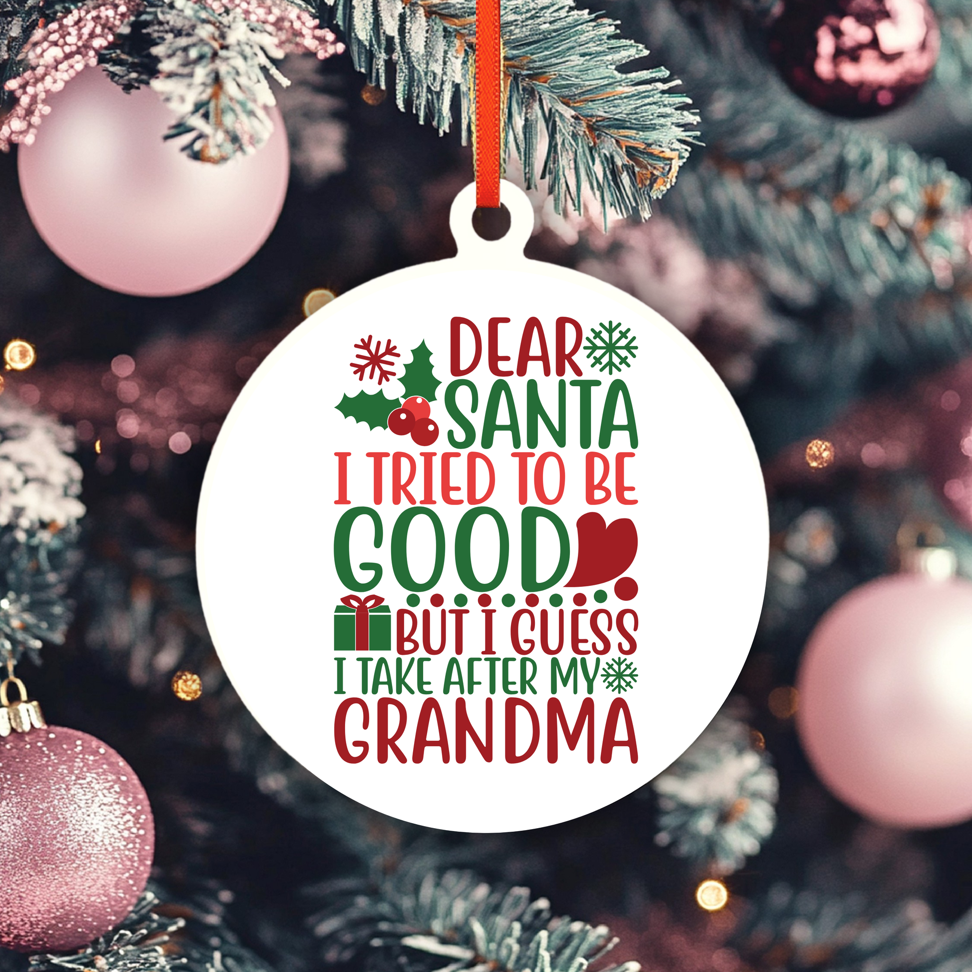 Celebrate your mischievous side with the "I Tried To Be Good" Ornament. This funky addition to your holiday decor features a playful double meaning, as well as the classic phrase "I guess I take after my grandma." Bring a humorous touch to your tree with this quirky ornament.